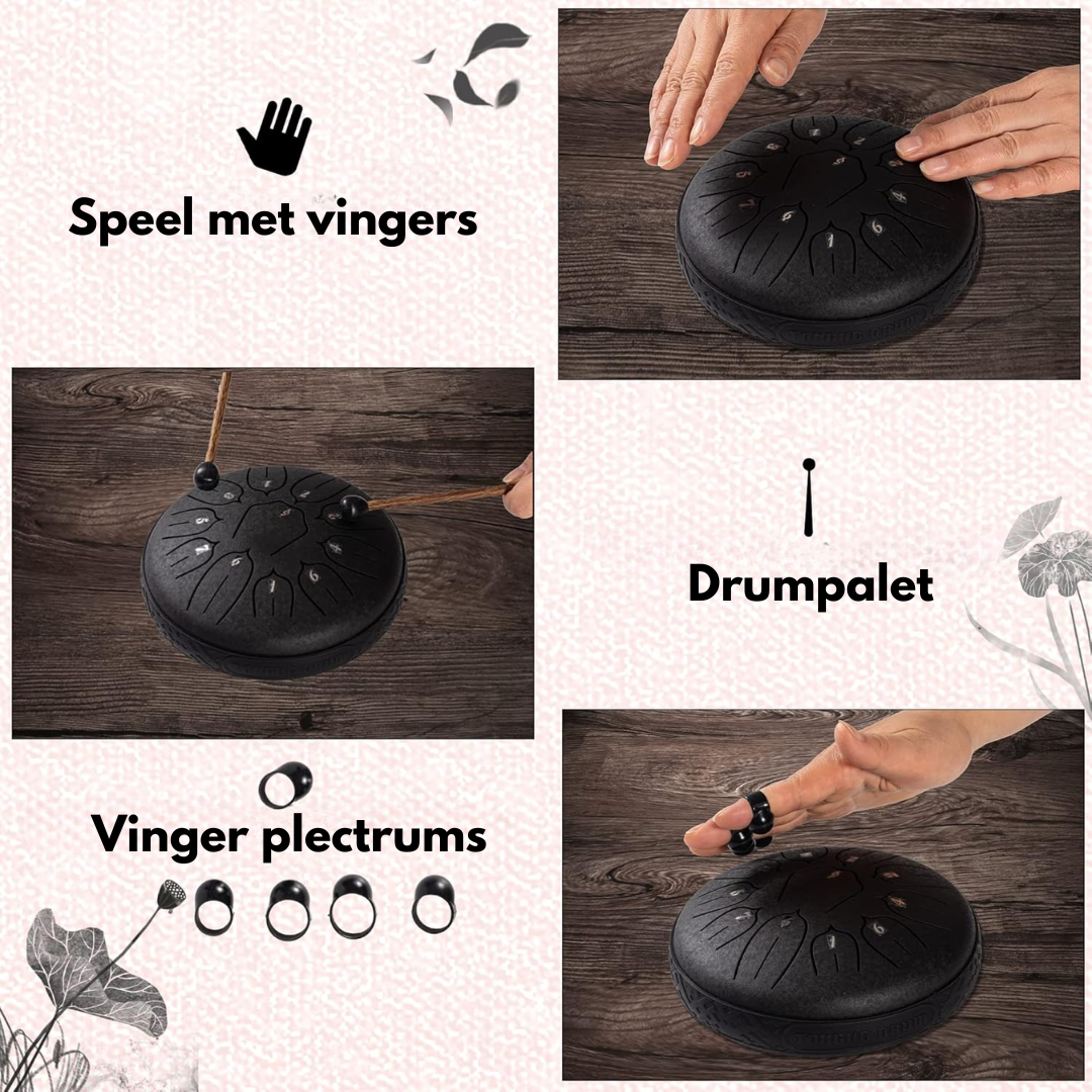 Thanks to the high-quality carbon steel and unique design, this glucofoon has a rich resonance and a pure tone. The 11 notes are carefully tuned to create a warm and soothing melody, even for beginners.